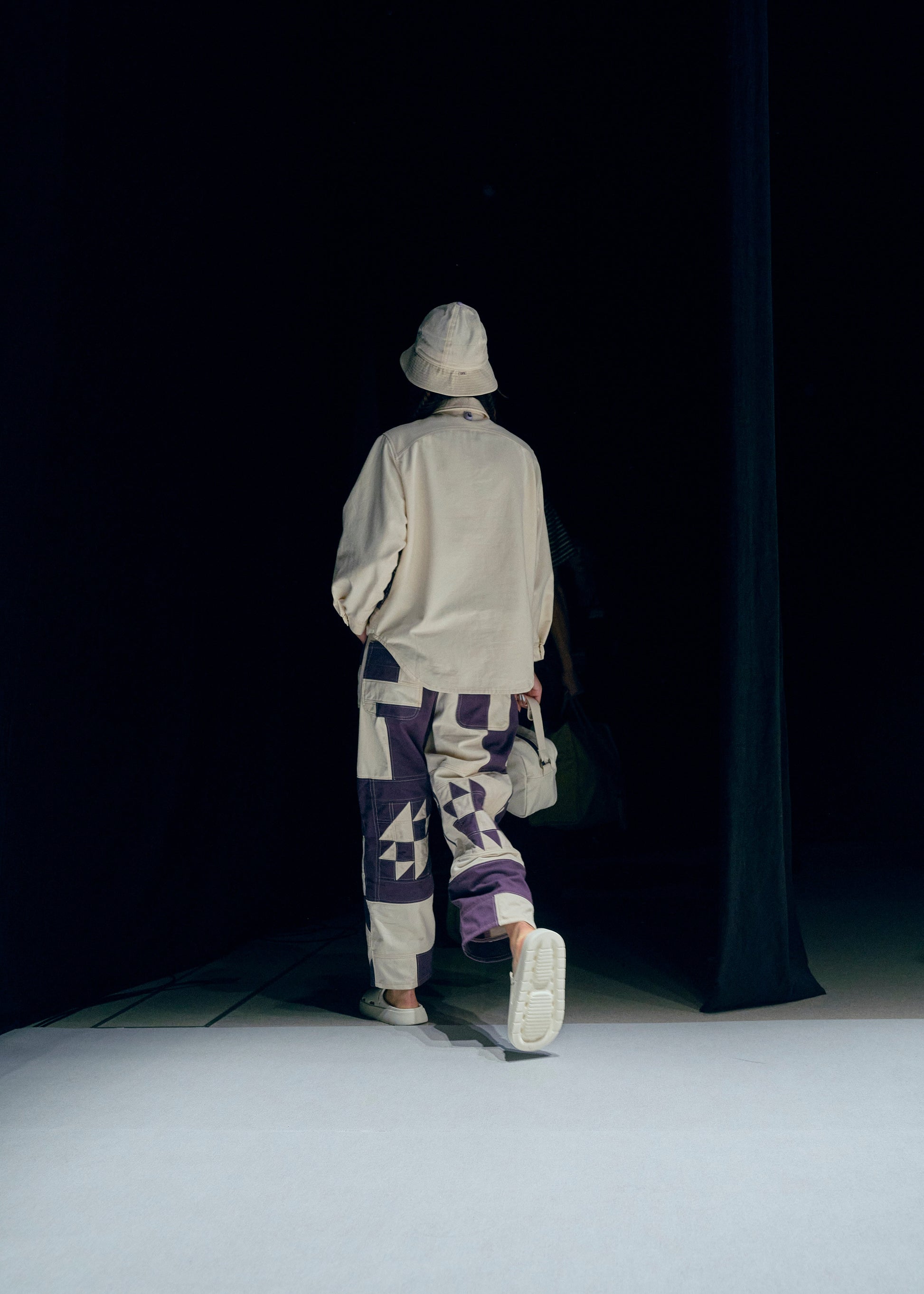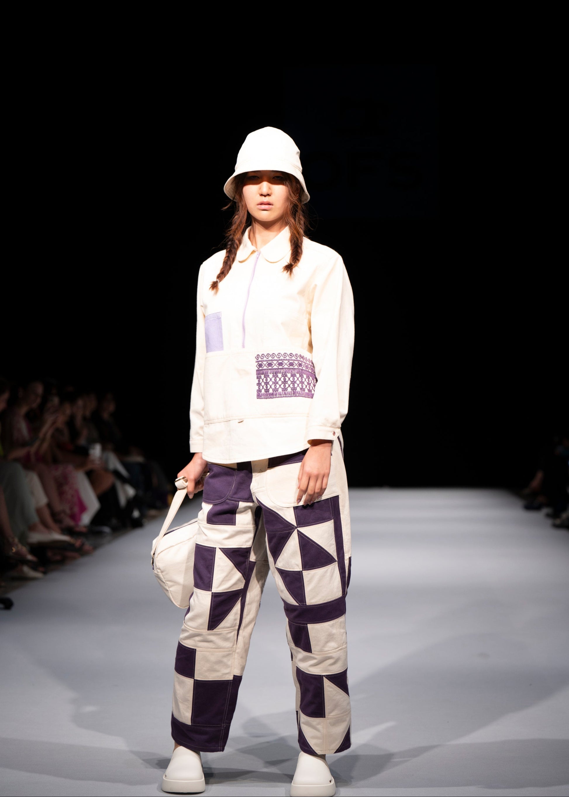 Indulge in a true labor of love with our Intricate Work Uniform, a beautiful collaboration with Palestinian artist Rawan Hassan. The shirt features stunning Tatreez work with snails, borders, and ants, while the trousers are meticulously quilted from collected scraps. A play of curved edges and stitch lines adds undeniable elegance. A statement of solidarity, the perfect balance of lavender and eggplant adds sophistication to this unique piece. A look we will cherish for all the years to come.