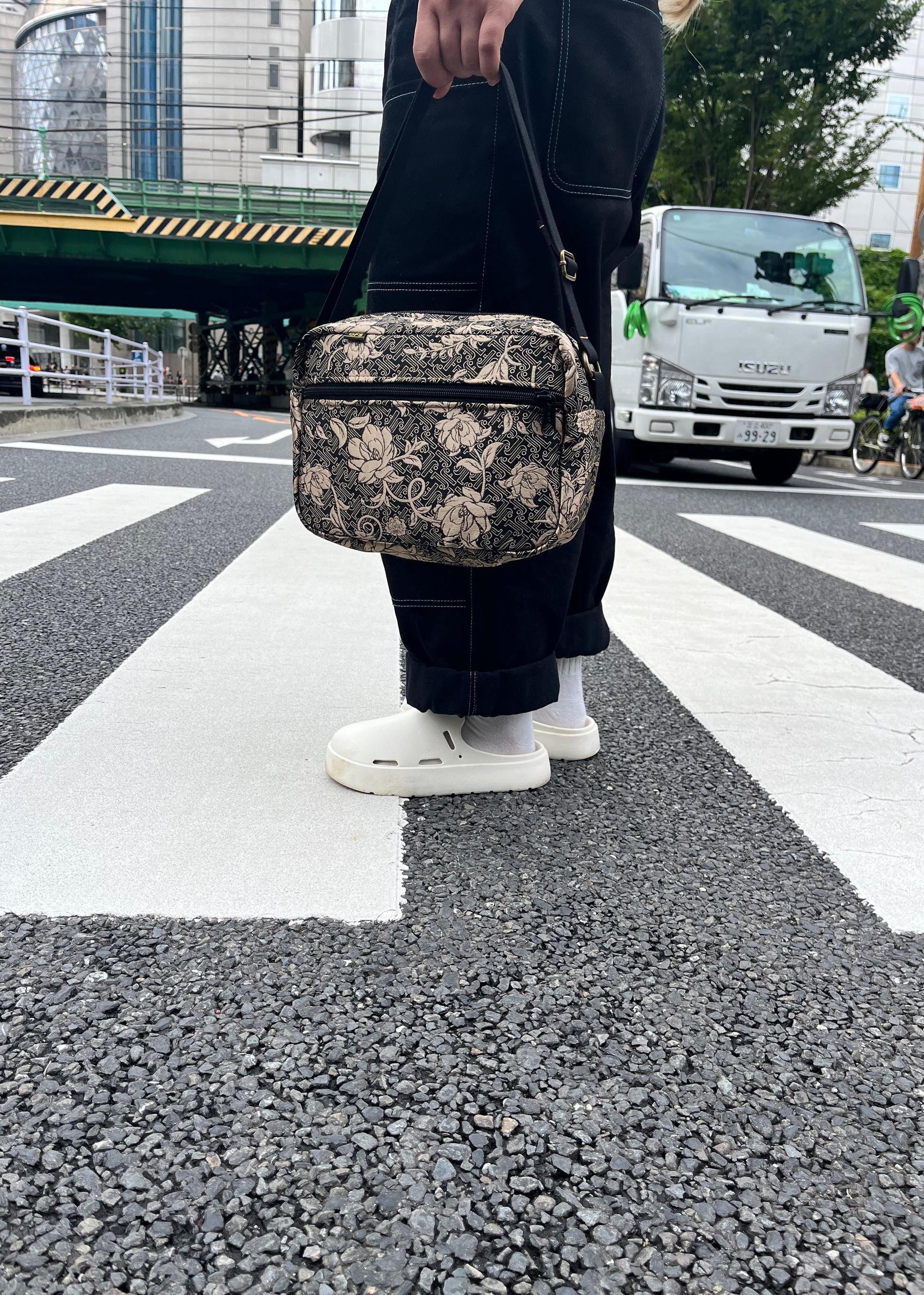 This beautiful floral Jacquard bag is lined in waterproof olive, and features a two way zipper and adjustable carry strap. This bag boasts a front zipper pocket and spacious interior that can hold all of your essentials and most of your non-essentials.