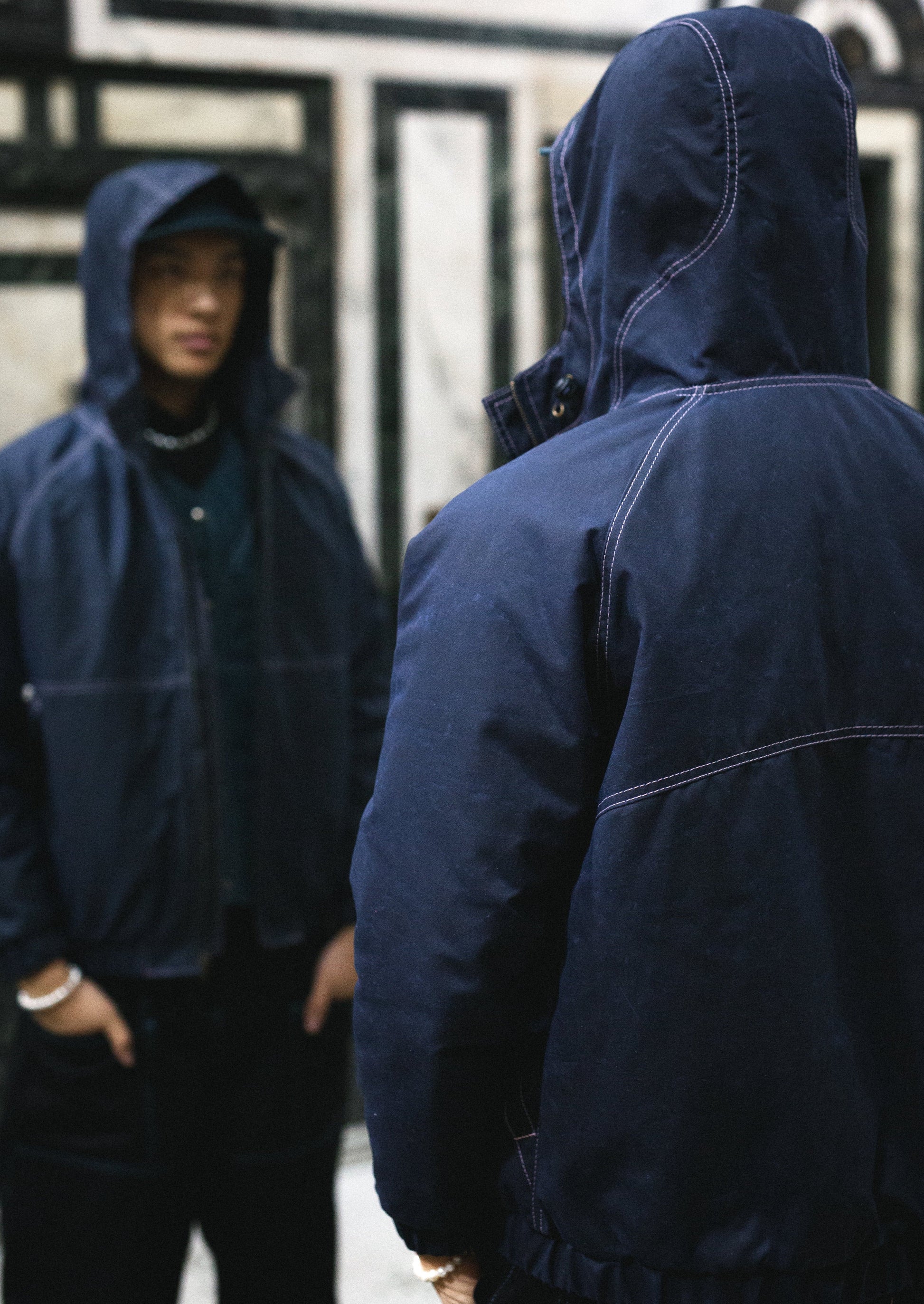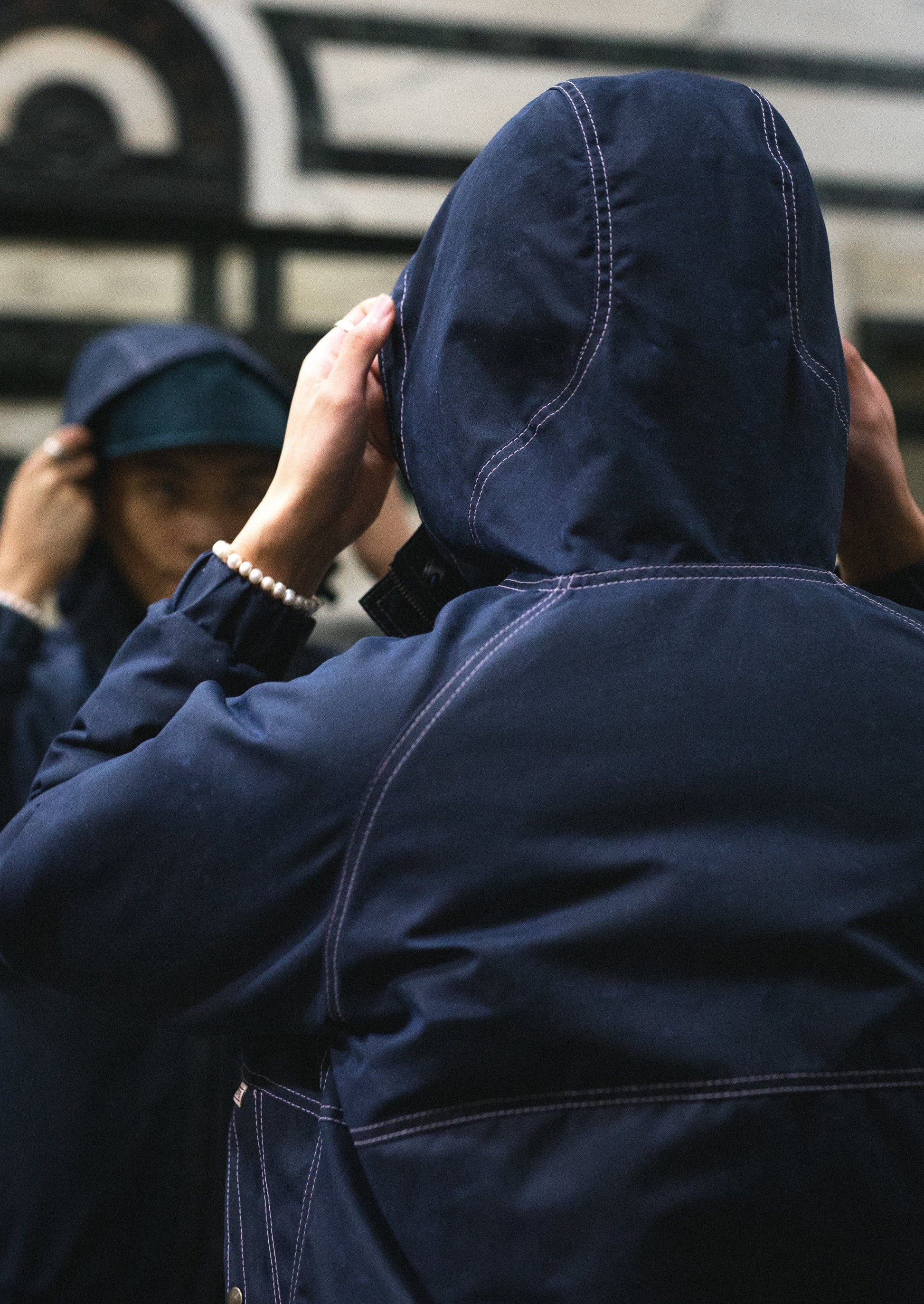 - Elastic draw string hood synch