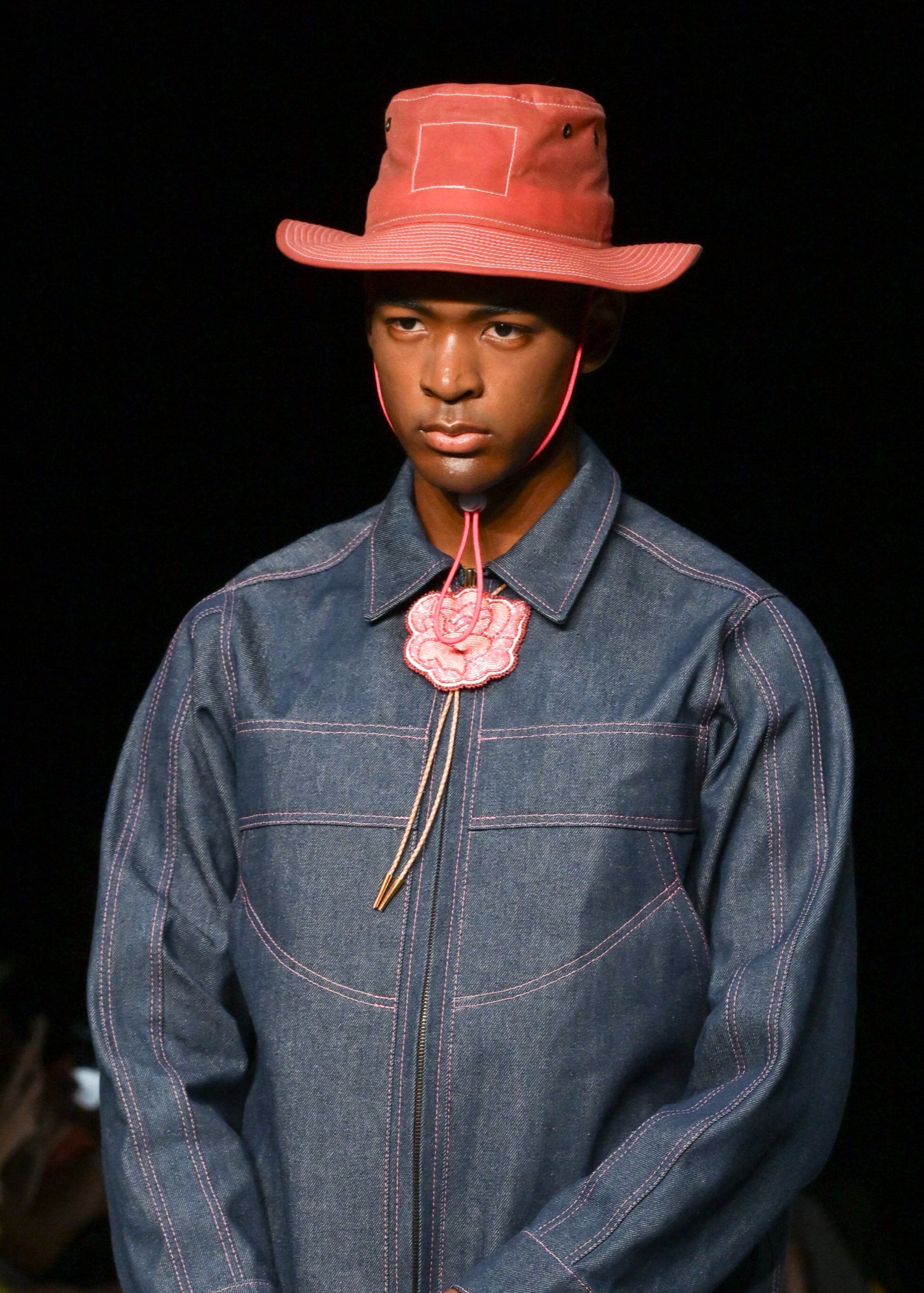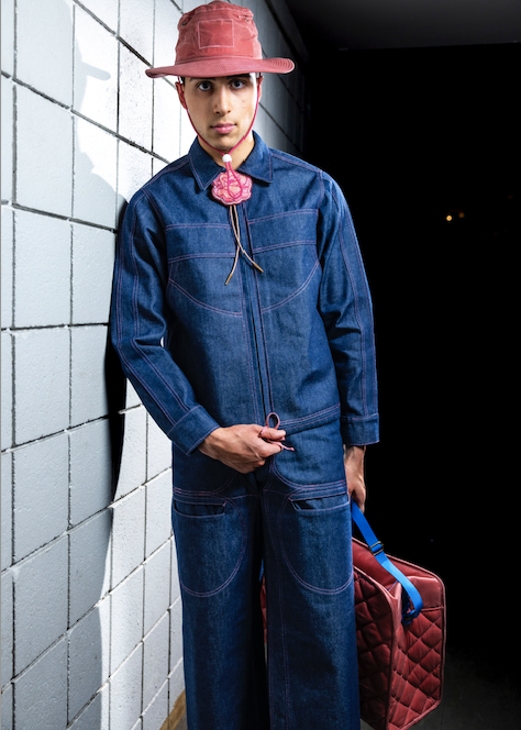 Introducing our Denim Ranch Set, a favourite among fashion connoisseurs. The indigo denim features a striking pink stitch, highlighting the exquisite beaded bolo by Jada Pape. This set is not just stylish, but also durable and functional, with circular welt pockets and a flare leg cut. The zip up chore style jacket offers a generous fit and spacious pockets. Experience the perfect blend of rustic charm and high fashion.
