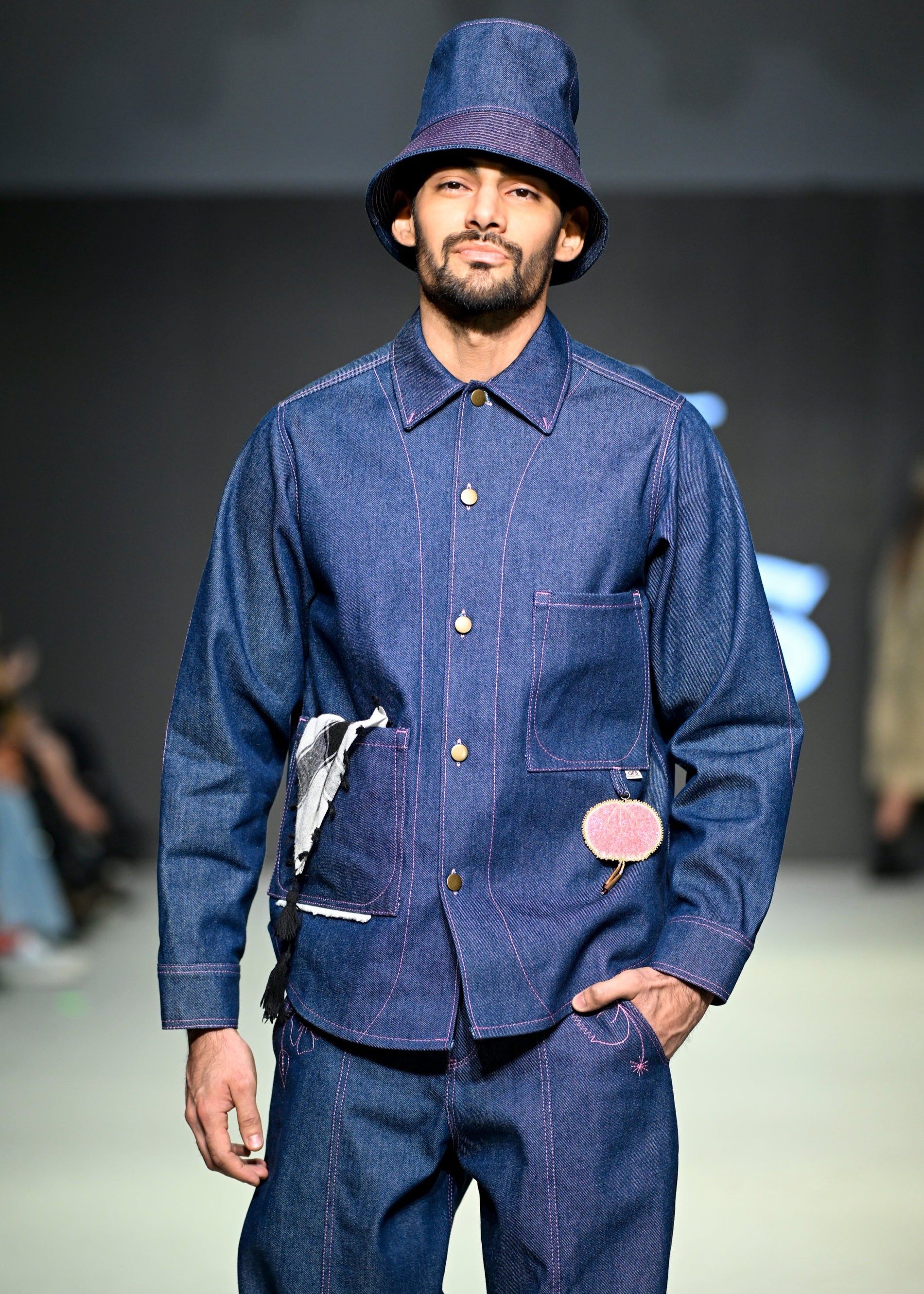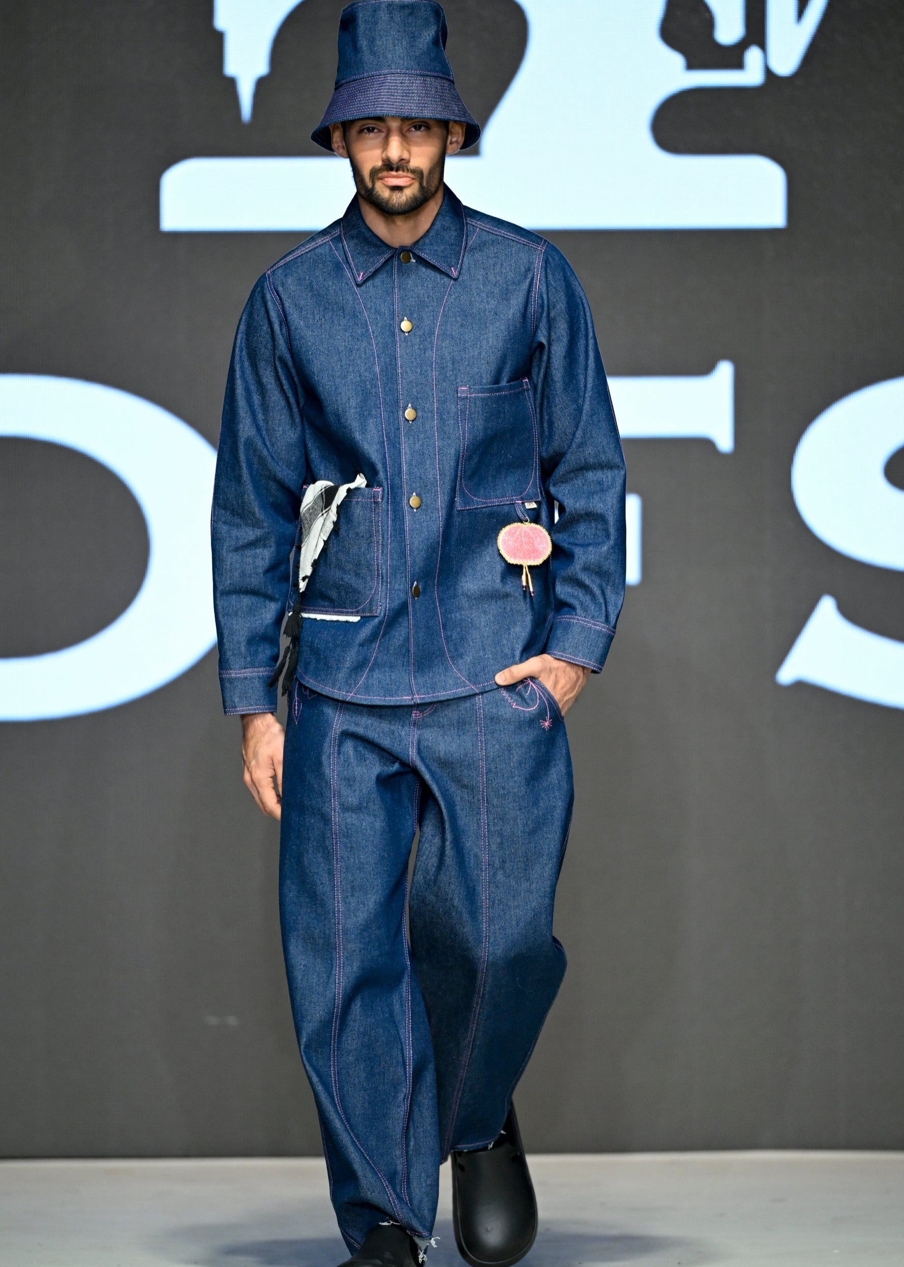 Experience the essence of luxury with our Floral Denim Set. Each individual element is handcrafted in a soft, sweet pink adorned with intricate floral patterns and meticulous beadwork. The vintage-inspired finishes and distinctive OFS touches elevate the look. The floral accents and generous fit of the luxurious bottoms are complemented by the matching top, featuring stunning floral details and ornate beadwork by the renowned artist Jada Pape. A true collaborative masterpiece.