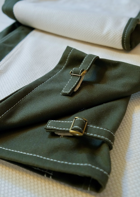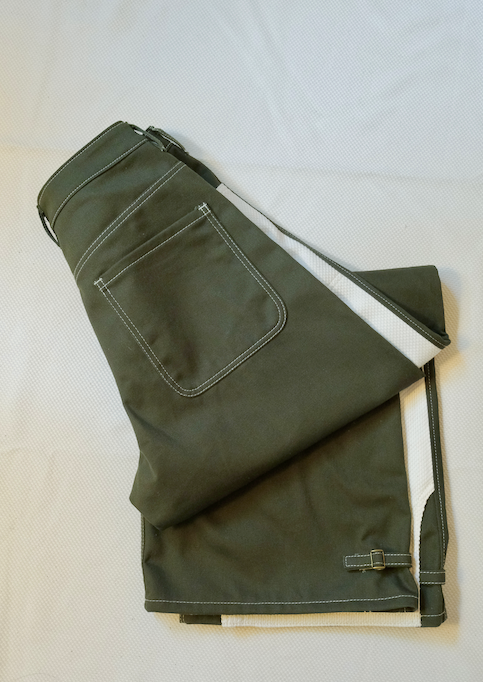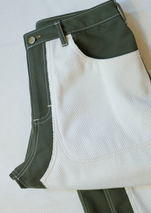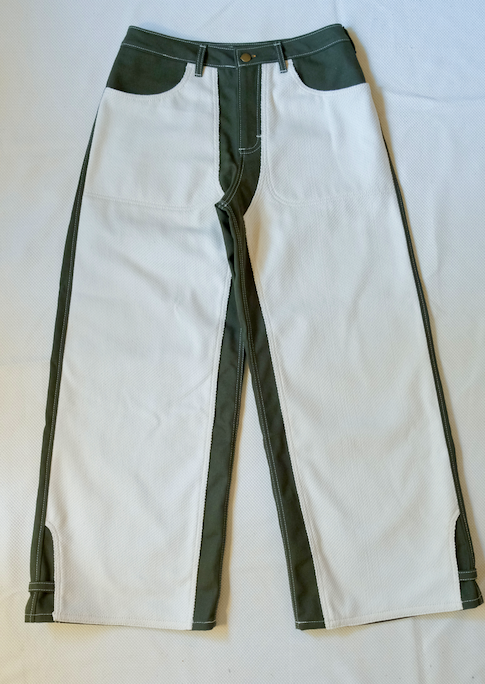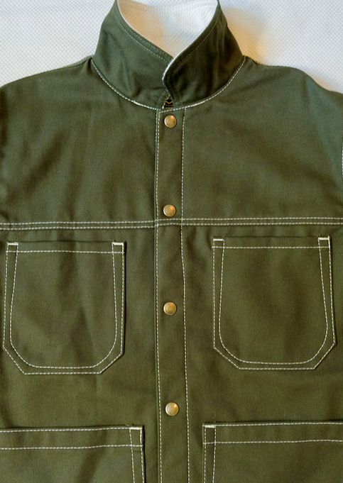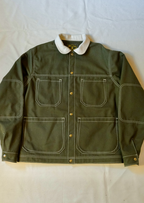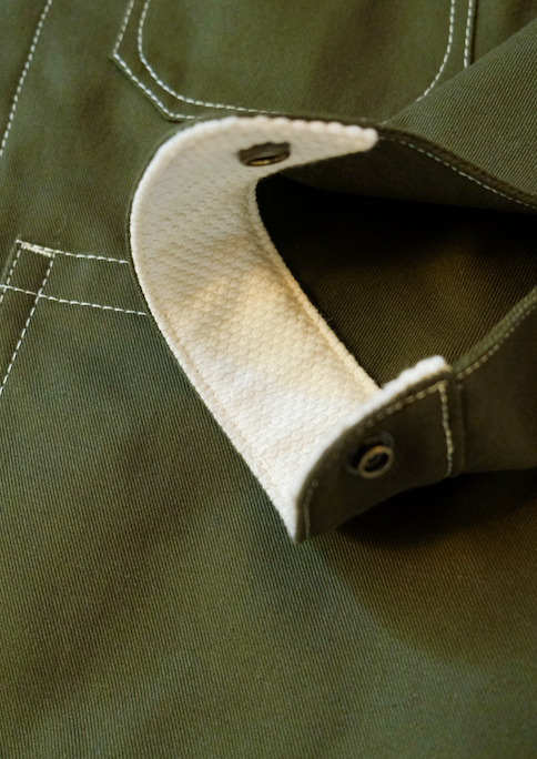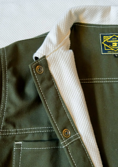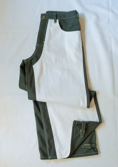 This Jalapeño Ranch set is made with Cream Shashiko material for the double knee chap and notes on the collar on the jacket. Tying it all together with a pop is the cream stitching. Noting every detail and design line.