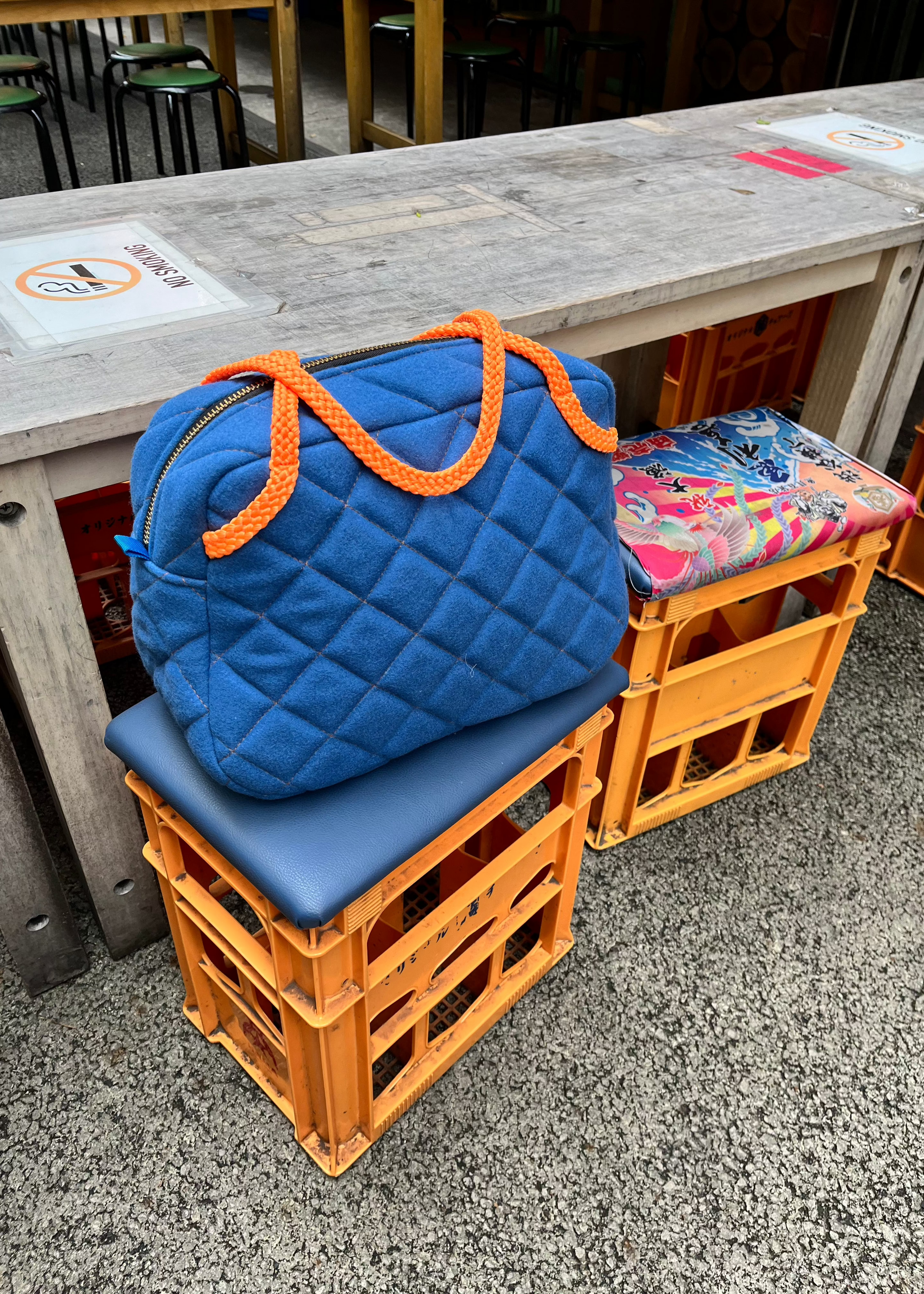 The Puff Purse in Baby Blue is made from Melton Wool and features a water resistant orange lining. The quilted design, created with half inch foam, adds a luxurious touch with its plump diamond pattern. Whether for everyday use, travelling or special occasions, this chic bag is a must-have accessory.