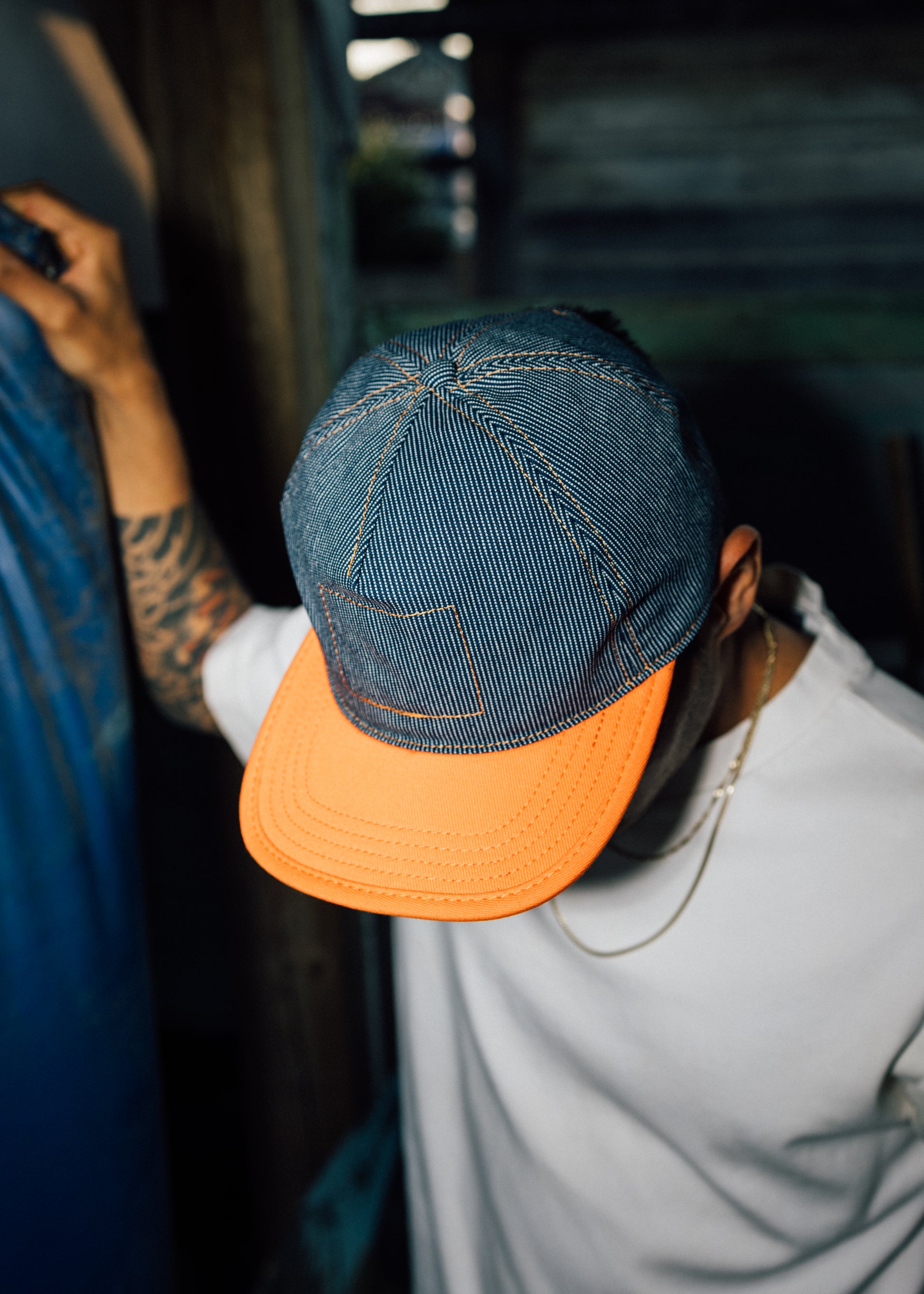 Elevate your ensemble with our newest 5 Panel cap, crafted from premium 100% Cotton denim twill. This two toned refined accessory combines classic design with practical innovation—featuring a semi-firm brim that remarkably floats in water. Whether artfully packed away for later use or worn throughout your engagements, this distinguished accessory effortlessly enhances your curated daily aesthetic.