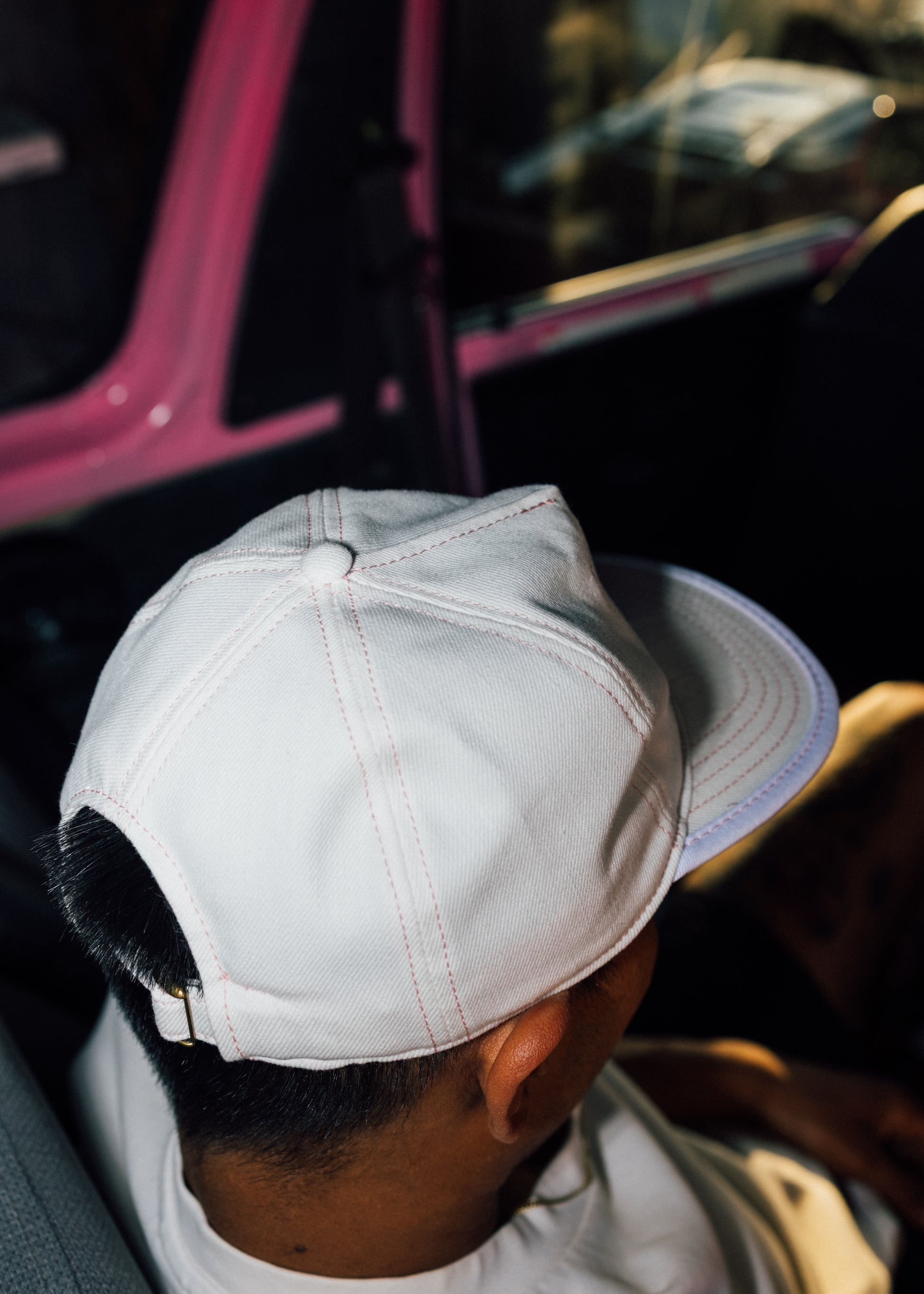 Elevate your ensemble with our newest 5 Panel cap, crafted from premium 100% Cotton Off White Denim. This refined accessory combines classic design with practical innovation—featuring a semi-firm brim that remarkably floats in water. Whether artfully packed away for later use or worn throughout your engagements, this distinguished accessory effortlessly enhances your curated daily aesthetic.