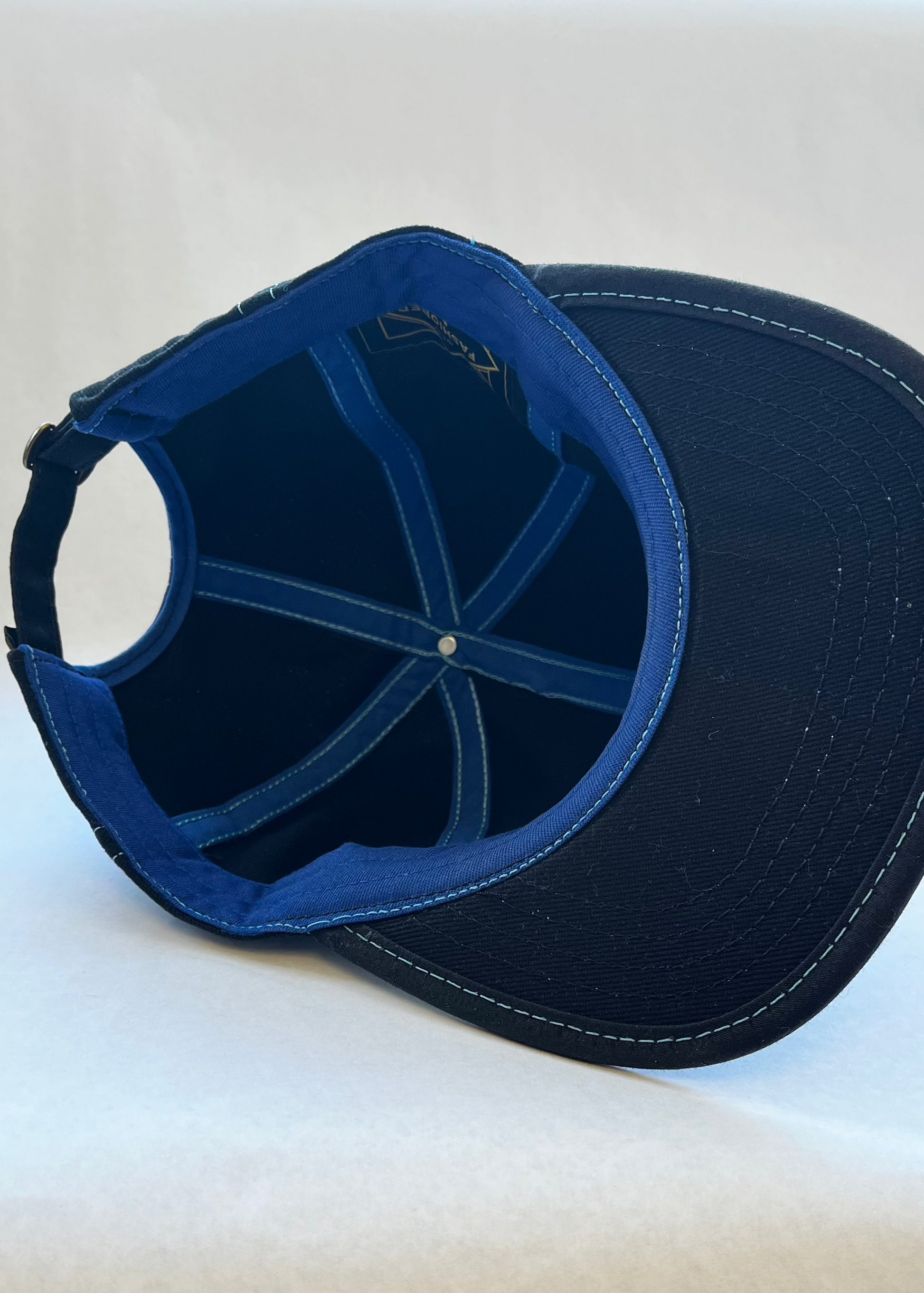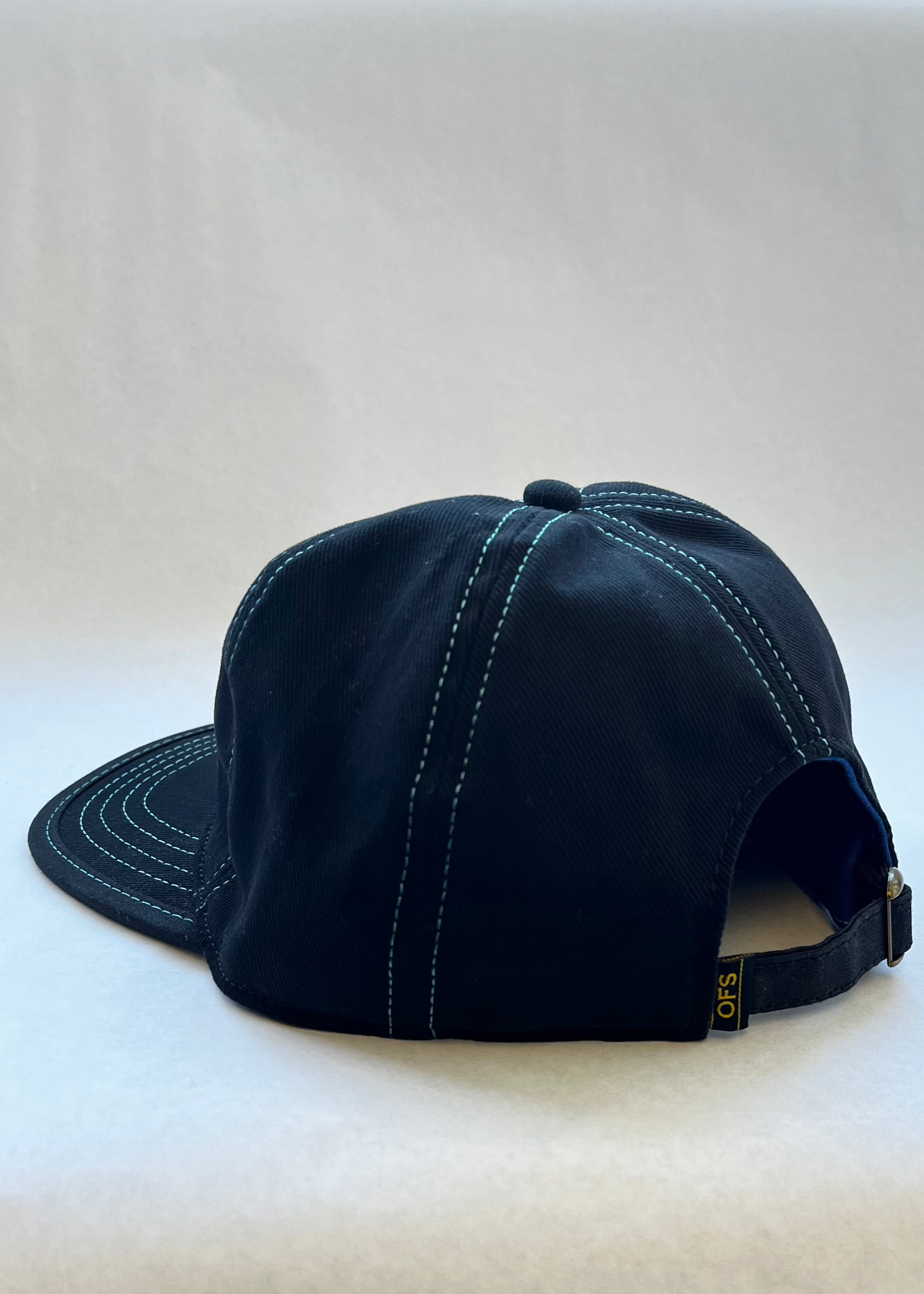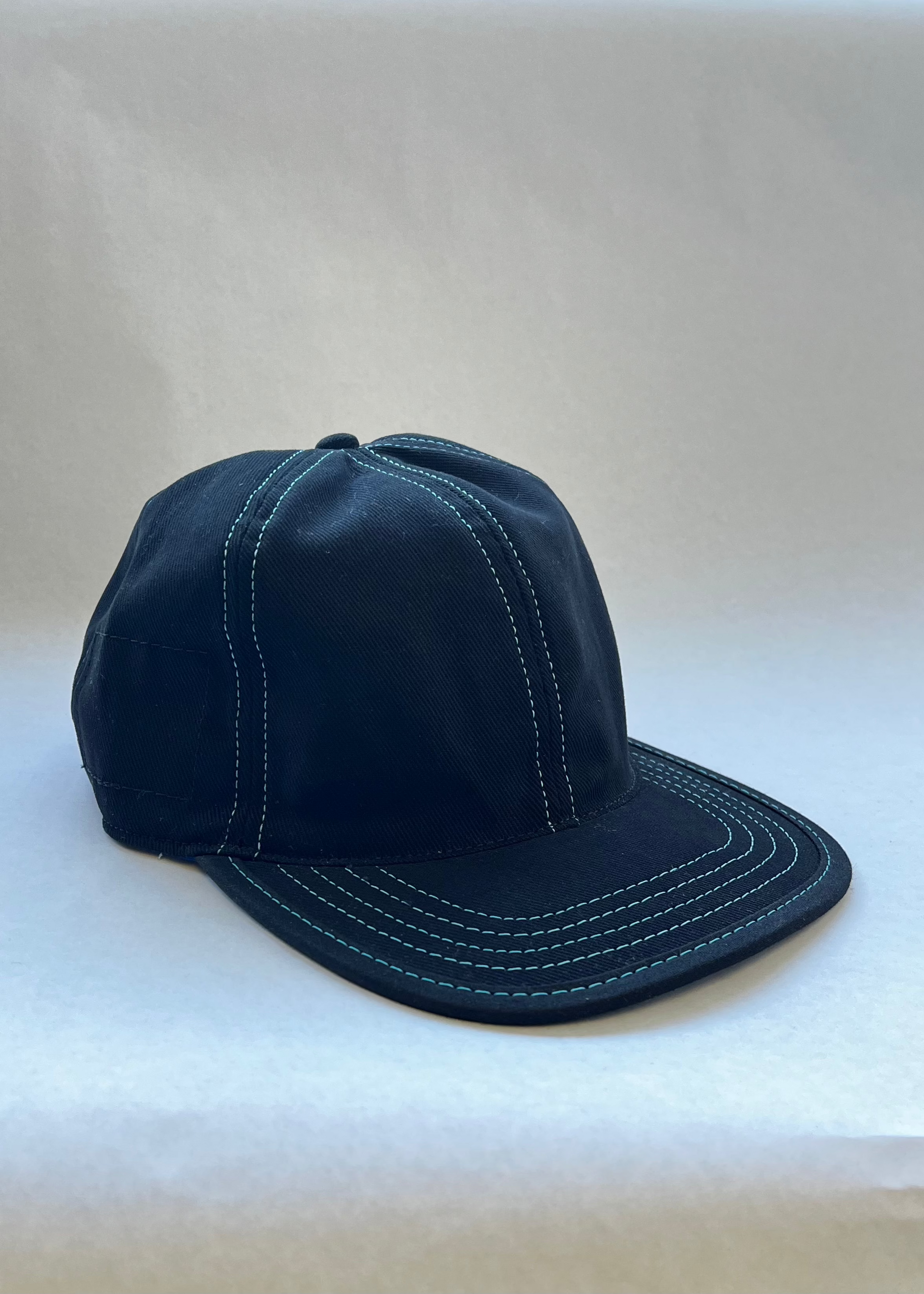 Stay stylish and comfortable with our Tall black 6 Panel Hat with baby blue stitching. This classic fitted cap features a firm brim, perfect for all-day wear or easy packing. Crafted from 10 oz brushed bull denim, it provides unbeatable sun protection and coolness year-round. Look and feel chic in this elevated addition to your wardrobe.