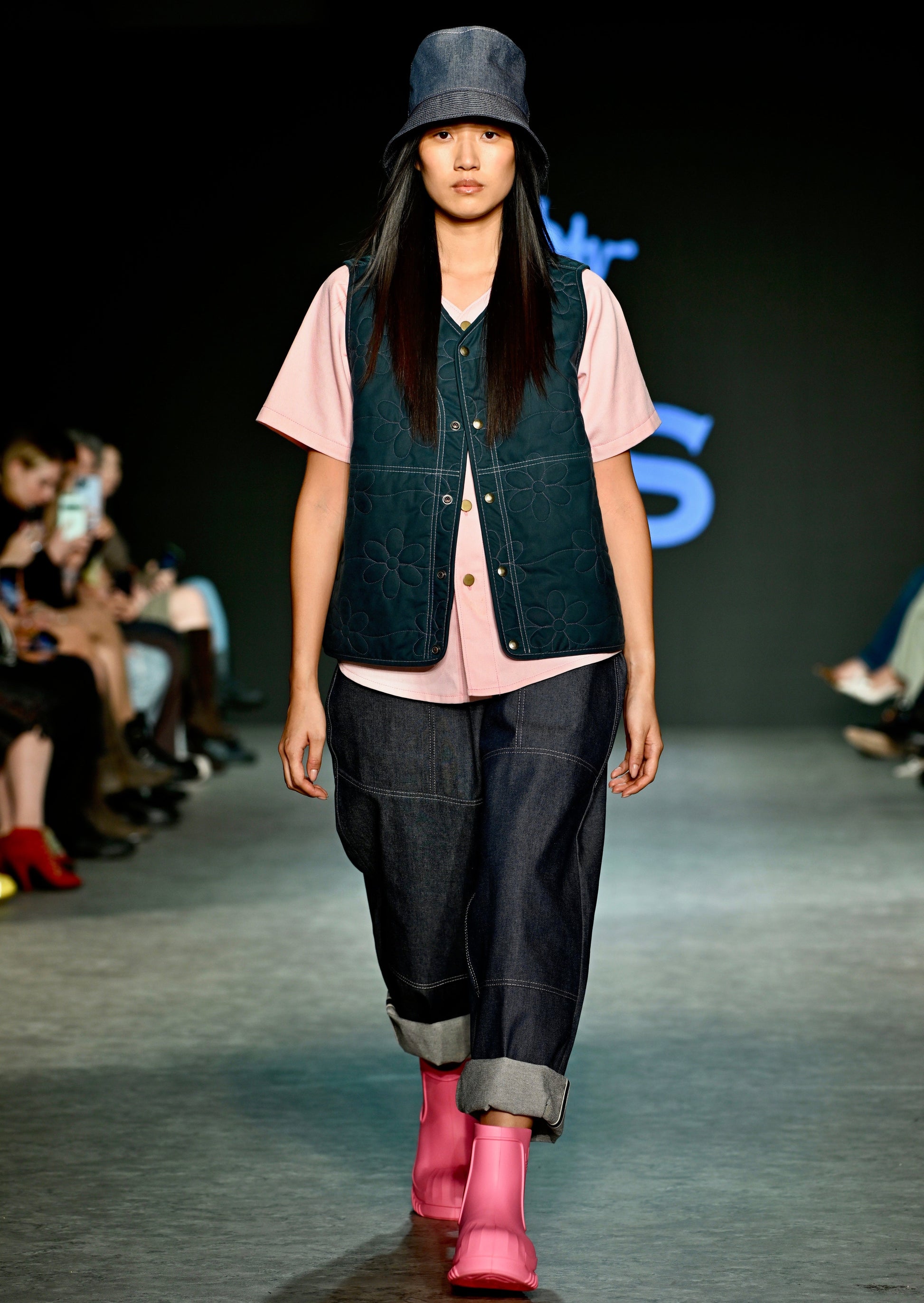 This 4-piece ensemble is a complete fashion story. It starts with a our tall take on a classic bucket hat cut in Kuroki Selvedge Denim with powder-pink stitching, a common thread throughout this tale. Its companion is a sweet pink Home Run button-down, combining to form an contrasting union. The Daisy Quilted vest in teal serves as the antithesis of this pairing, while its companion Baguettes feature the same denim and stitching as the hat it naturally anchors this irresistible combination. Worn together, the ensemble is chef's choice; a perfect look.