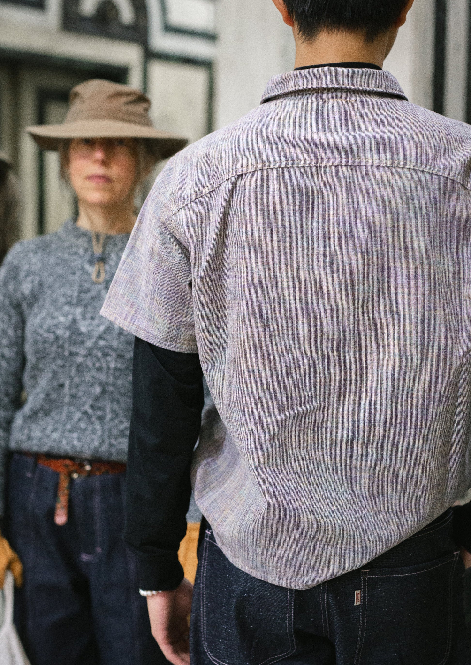 This Wool blend Tweed Shirt is versatile and breathable and can be worn all year round. Paired with the new Super Nep Fancy Pant both stitched in powder pink thread and with a supple texture tying them together, they quite literally were made for each other. The all season shirt is made in the finest Japanese shirting it is lightweight but structured material that you can dress up or down.