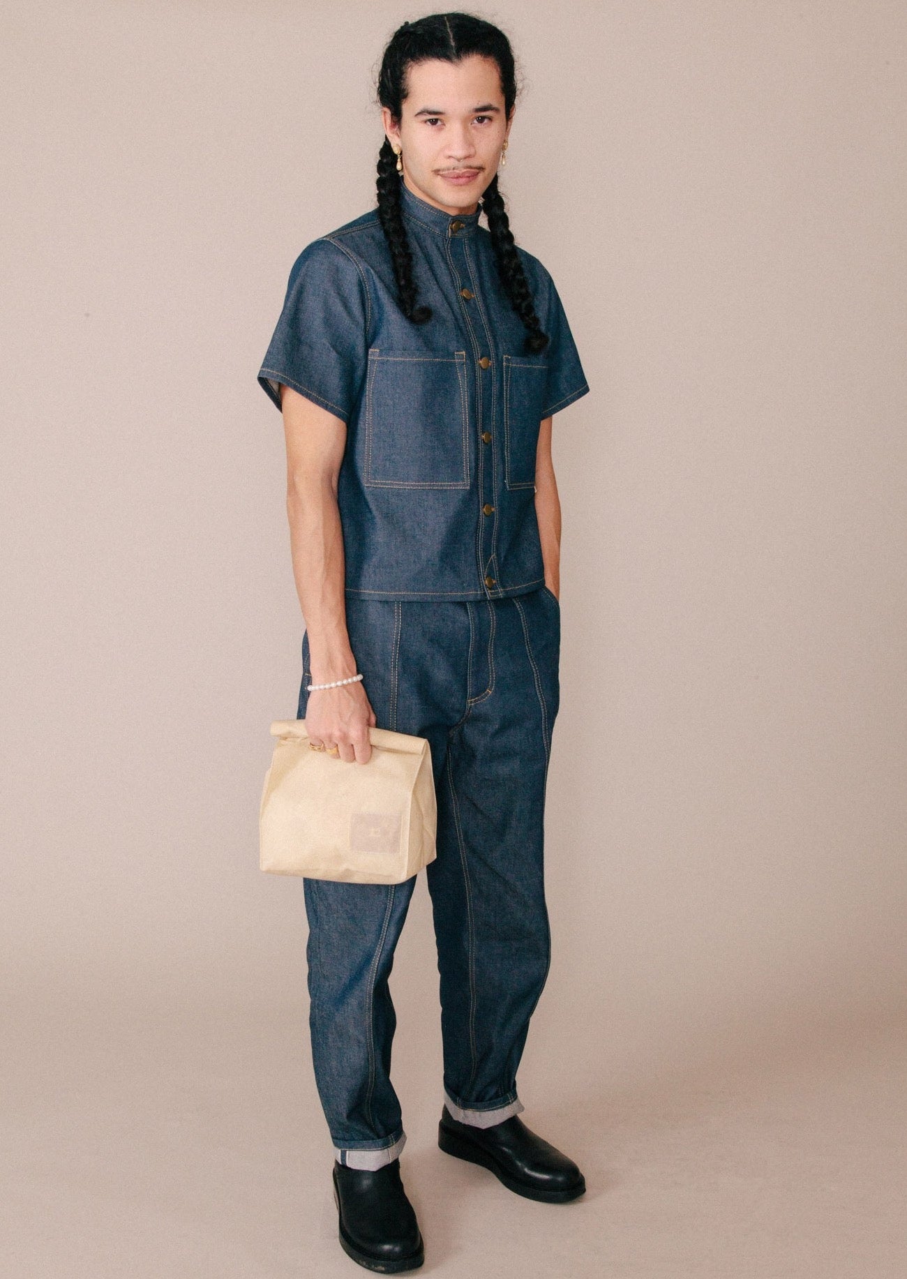 Inspired by the shape of a vintage dress pant, the Fancy Pants Pants are the perfect dressed-up jean. Designed as fancy jean to wear on a dapper date, we imagine this pair of pants thriving at a cute event with a glass of bubbly in hand. The bagginess of this pant fits between the width of the OFS Baguettes and sleekness of the 9 to 9 Work Pant. With an added front seam detail and the sleek Kuroki Raw Denim, these pants will sharpen up your look to the next level.