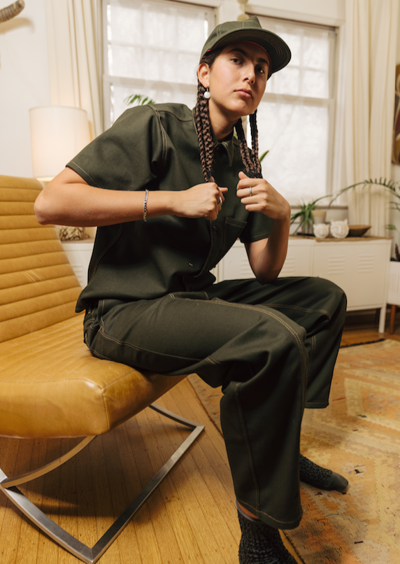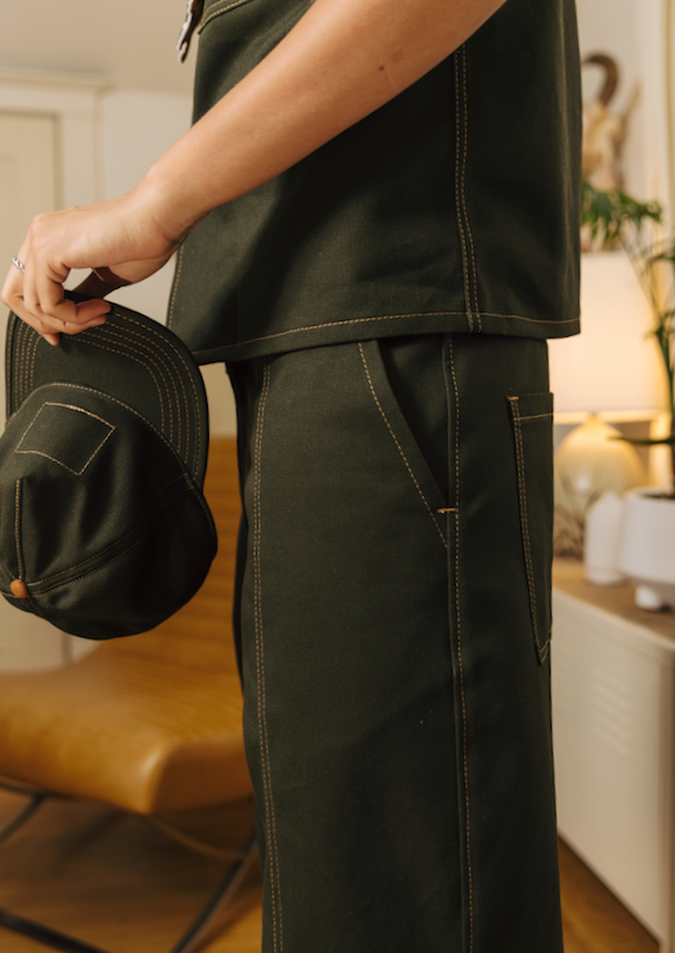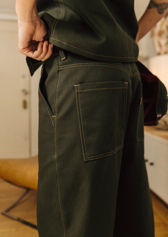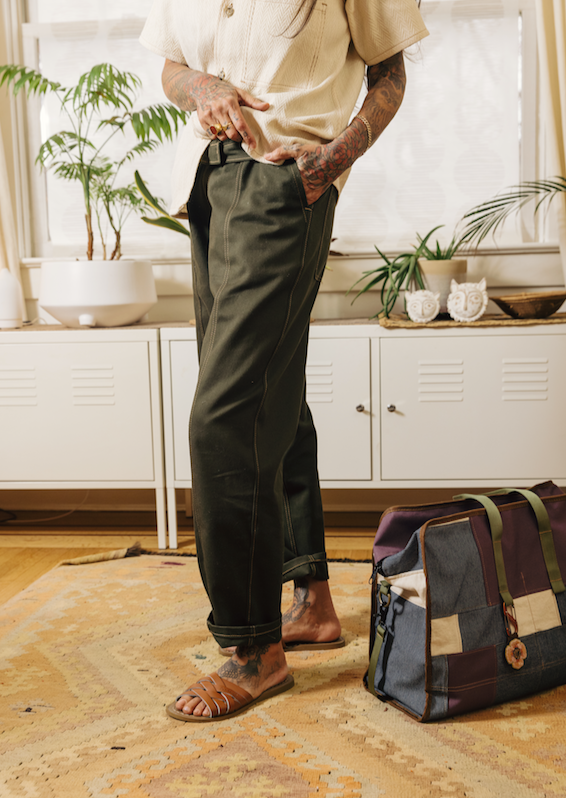 Inspired by the shape of a vintage dress pant, the Fancy Pants Pants are the perfect dressed-up jean. Designed as fancy trouser to wear on a dapper date, we imagine this pair of pants thriving at a cute event with a glass of bubbly in hand. The leg of this pant fits generous and features a front seam taper at the hem and waistband to create a beautiful leg shape. The Chevron weave is type of herringbone that is durable yet textually appealing and fashionably pleasing!