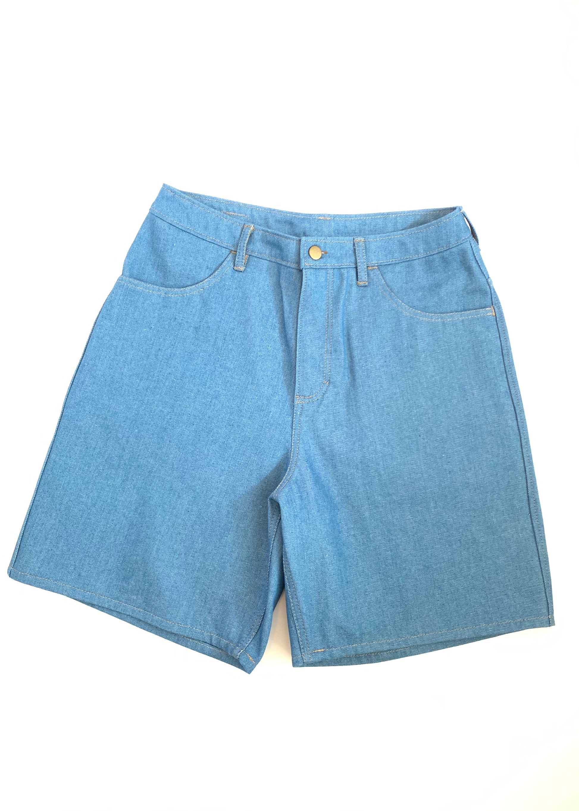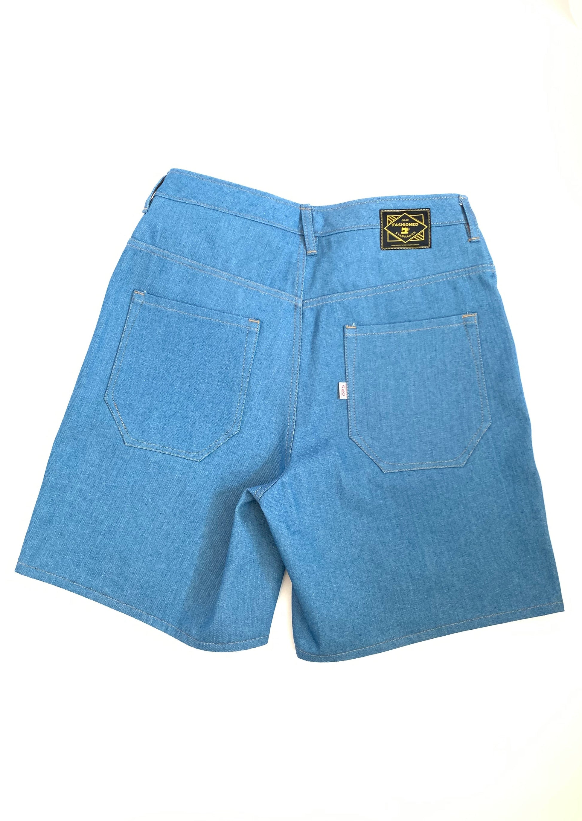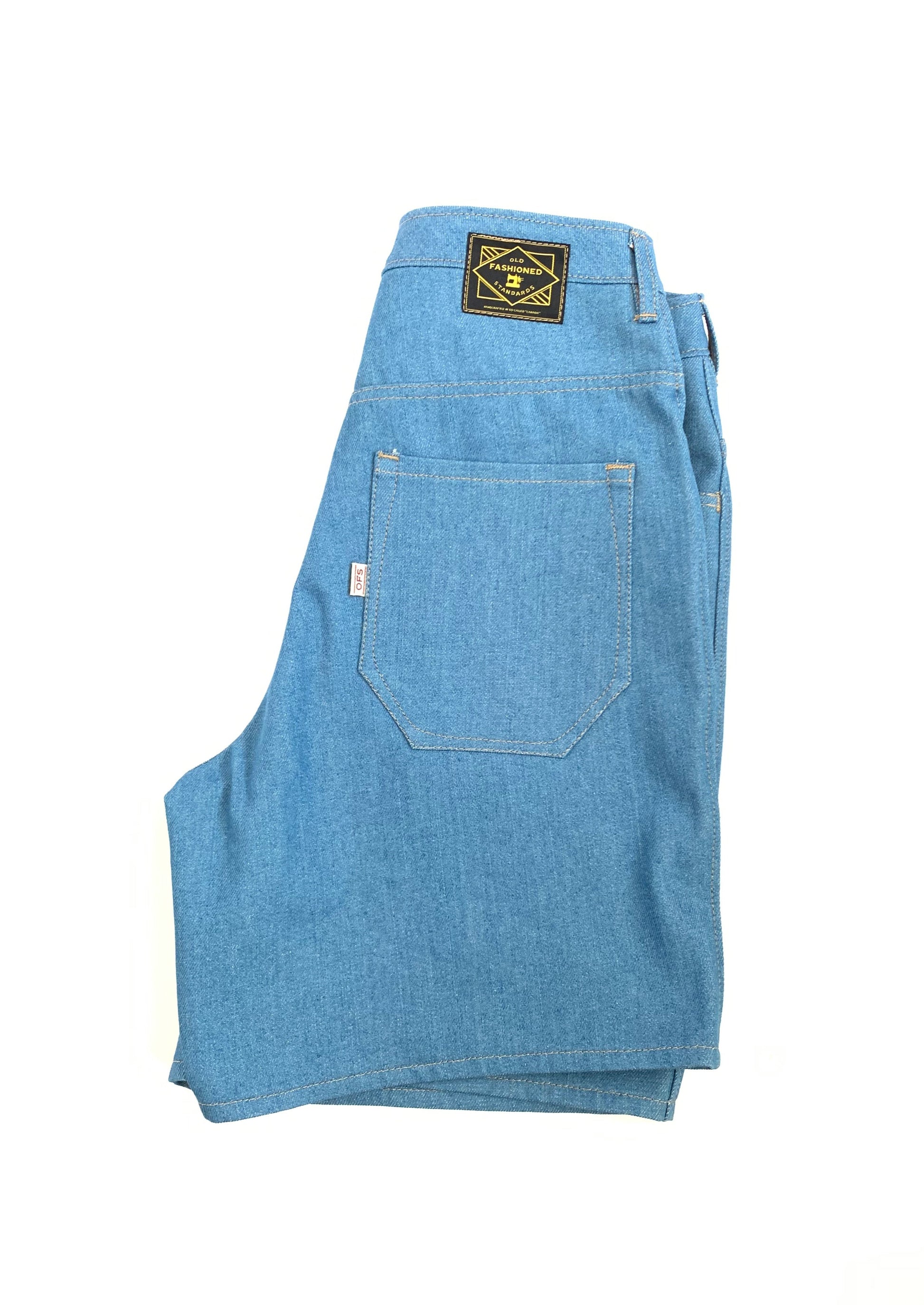 The Light Denim shorts are a generous fit that tapers upwards into a proper fit at the waistband. These shorts are durable and versatile, textually appealing, fashionably pleasing!