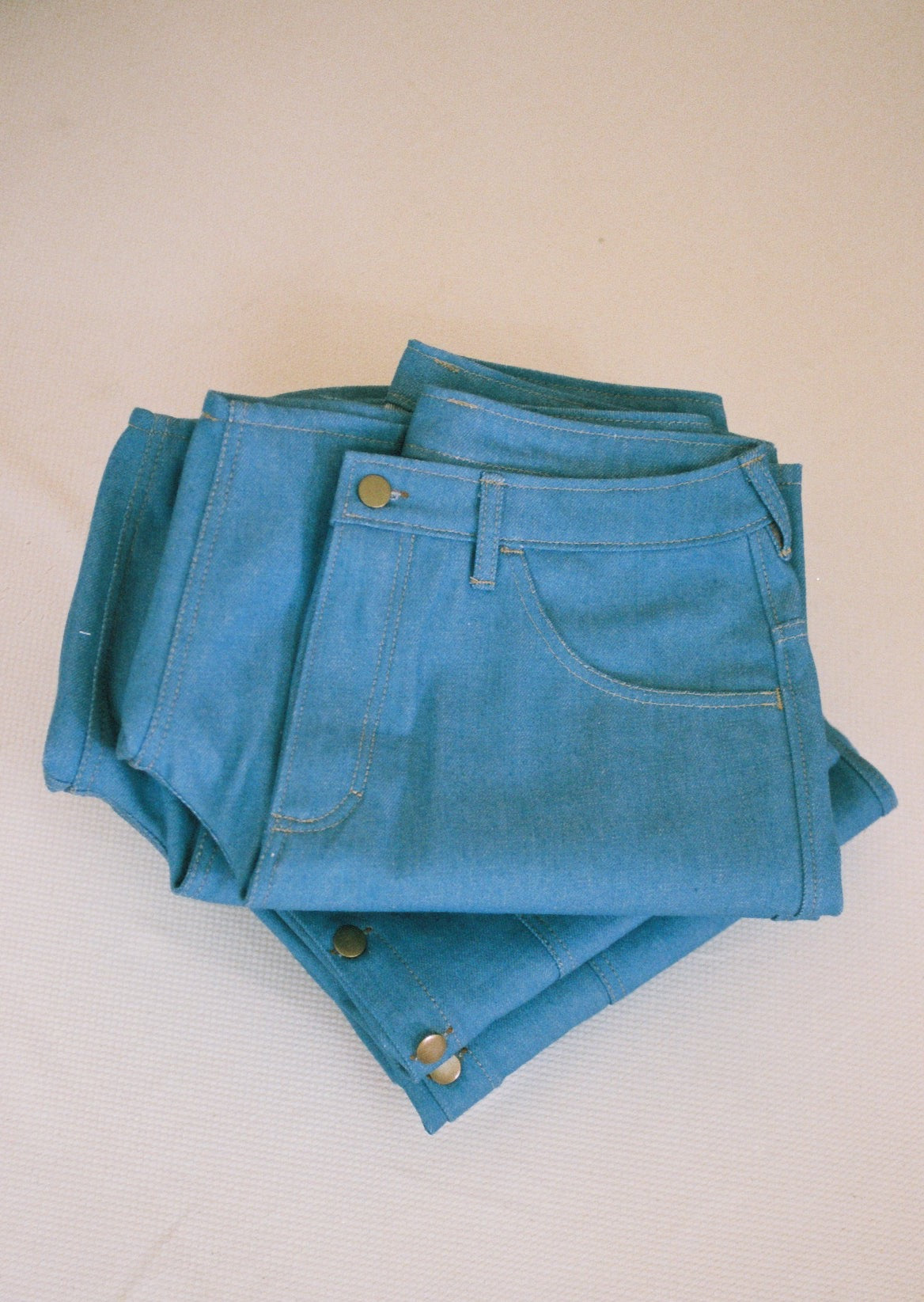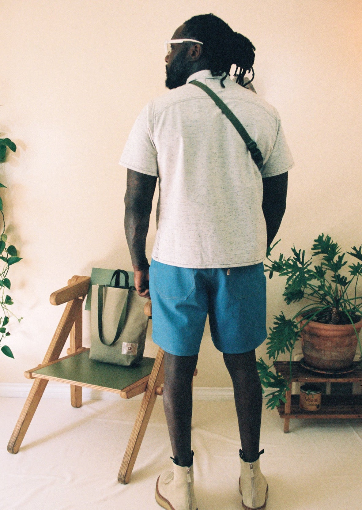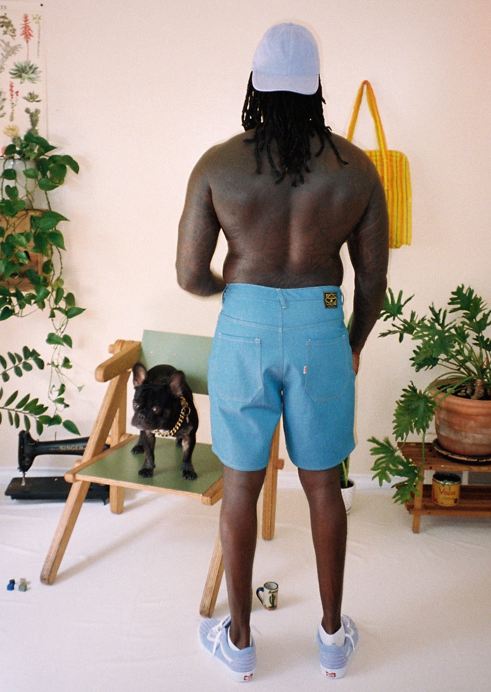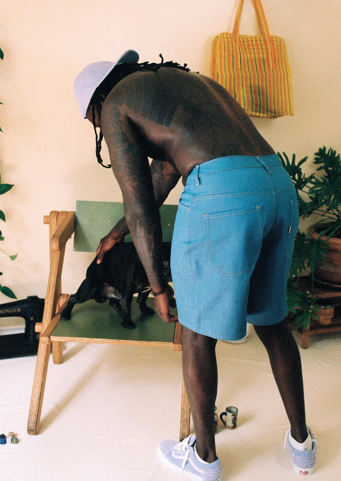 The Light Denim shorts are a generous fit that tapers upwards into a proper fit at the waistband. These shorts are durable and versatile, textually appealing, fashionably pleasing!
