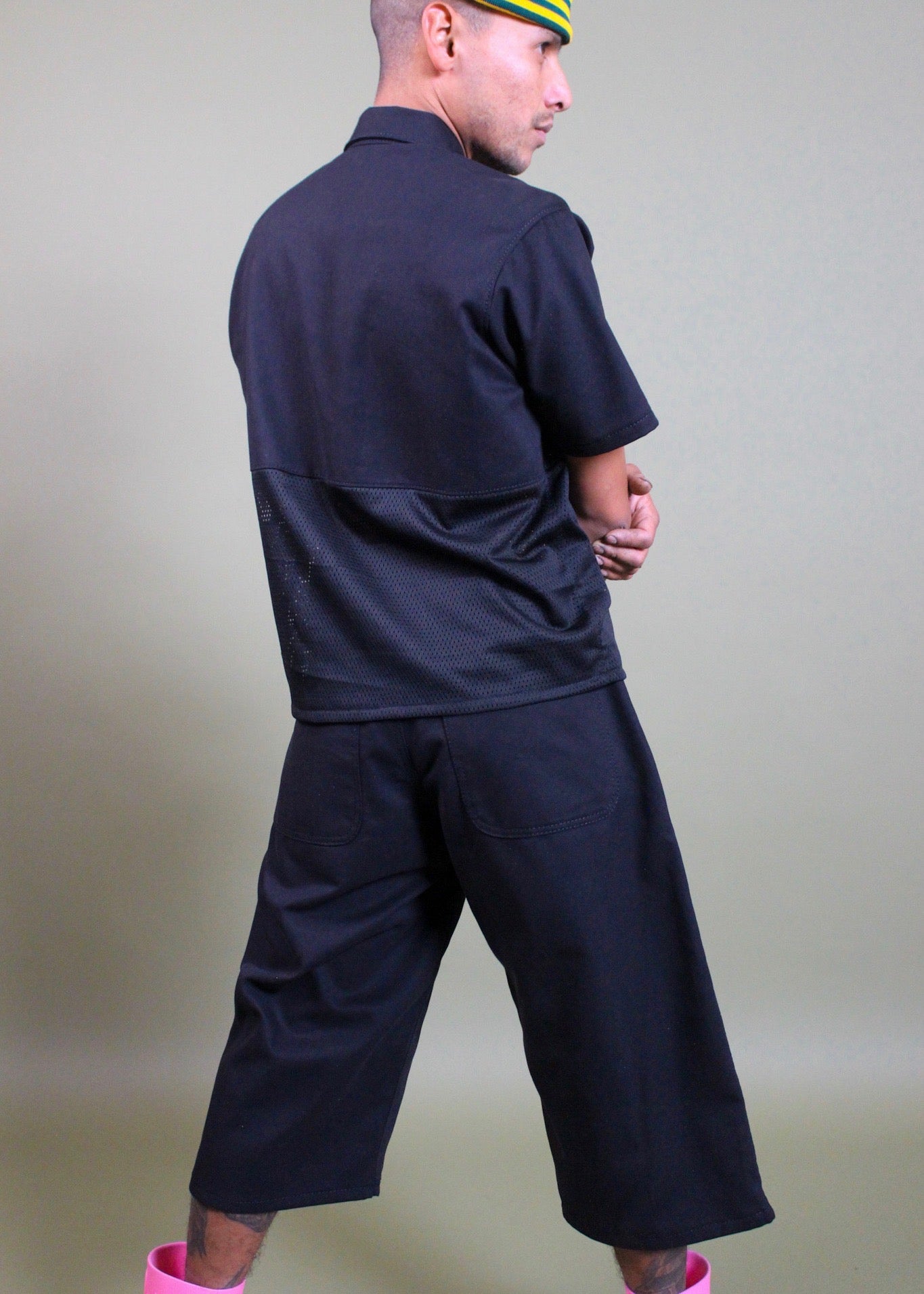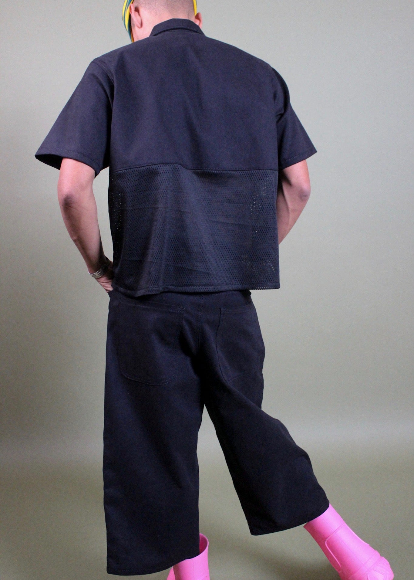 Top: This boxy mesh shirt is cropped above the waist creating a perfect detail of subtle sexy to your look. The luxurious mesh hangs and flows flawlessly. Size s/m