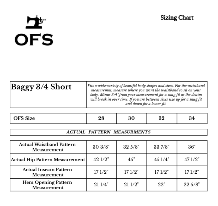 Bottoms: Finally, our 10 oz brushed cotton twill 3/4 length baguette grounds the look with an eye-catching finishing touch, perfectly matching the upper half of the shirt. Size 28