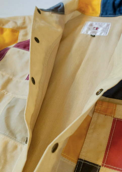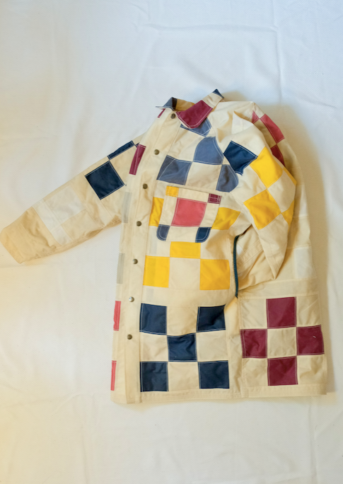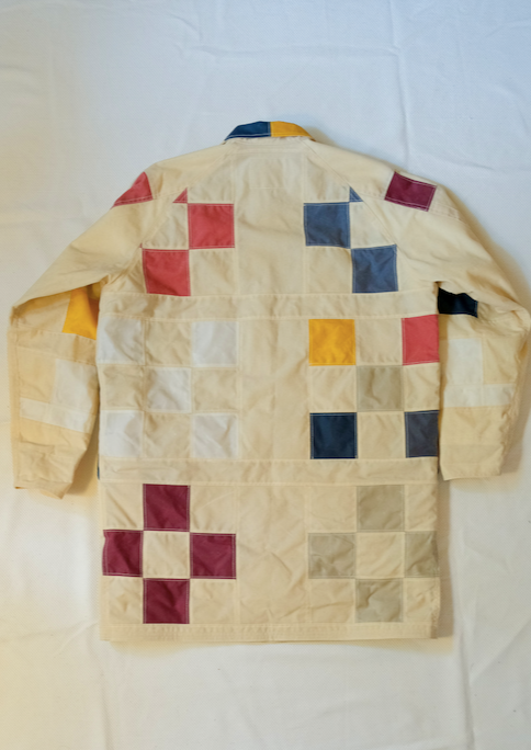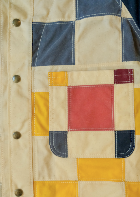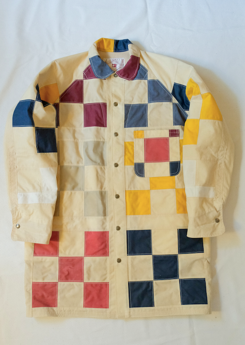 This is the 9 square inspired quilt pattern, one of the first wall hanging quilts I made for my mom when I was 16. Each 3" square is hand cut from off cuts and scraps collected over the years. A zero waste wax cotton rain coat, with a generous fit, fully lined for a 3 season wear, and the perfect coat to dress with any bottom of choice. Each square seam is spread open and double topstitched for durability and clean flat seams.