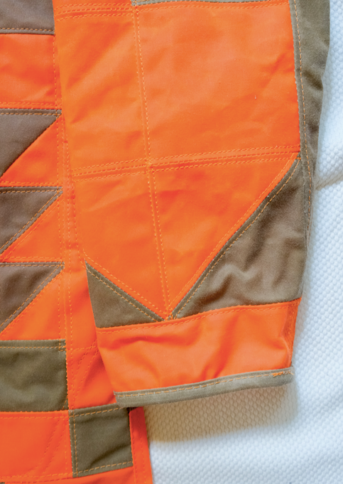 - Quilted using scraps and roll ends of forest green up-cycled oilcloth and white ethically sourced waxed cotton.