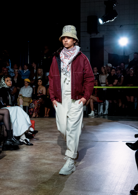 The rally set is the perfect outfit to take to the streets rain or shine for a free free Palestine. This puffer is guaranteed to keep you dry and warm, while bucking the wind whether you marching in the rain or snow, it's certified all weather proof. The oatmeal overalls add that extra layer of warmth and many utility pockets for all your essentials. Topped off with a tall bucket hat sewn in our waxed cotton oatmeal stitched with blue.