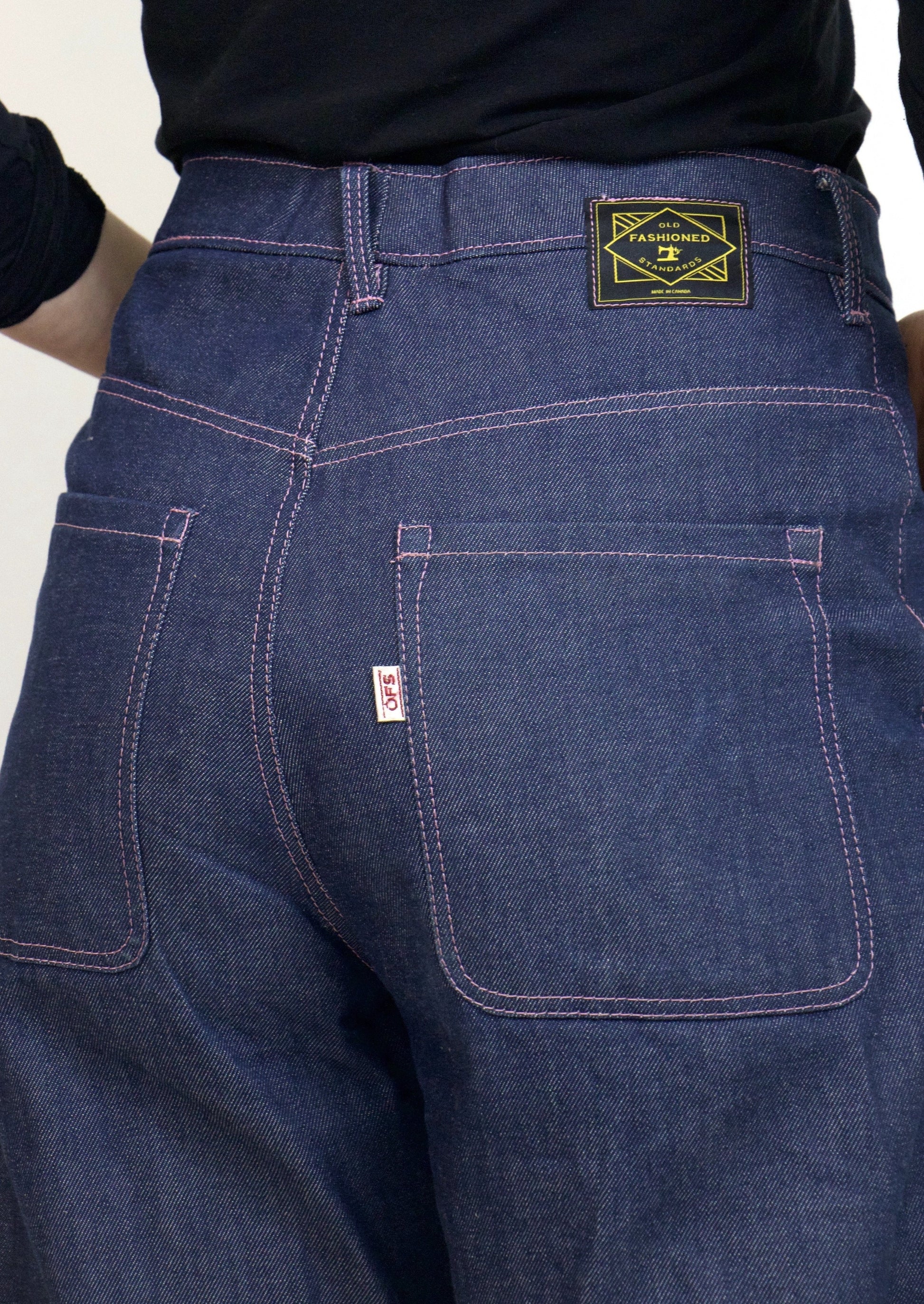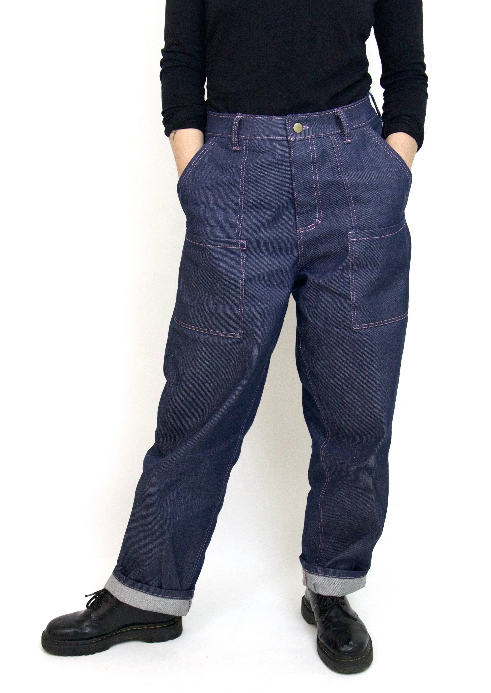A delicate balance of perfection with all the bagginess you want in the leg but a waistband that actually fits. The Baguettes are a gender fluid pant (like all our products), however they are specifically drafted to cater more to those with wonderful hips and bottoms, yet also fit great to those without. Pants shown with Pink stitch.
