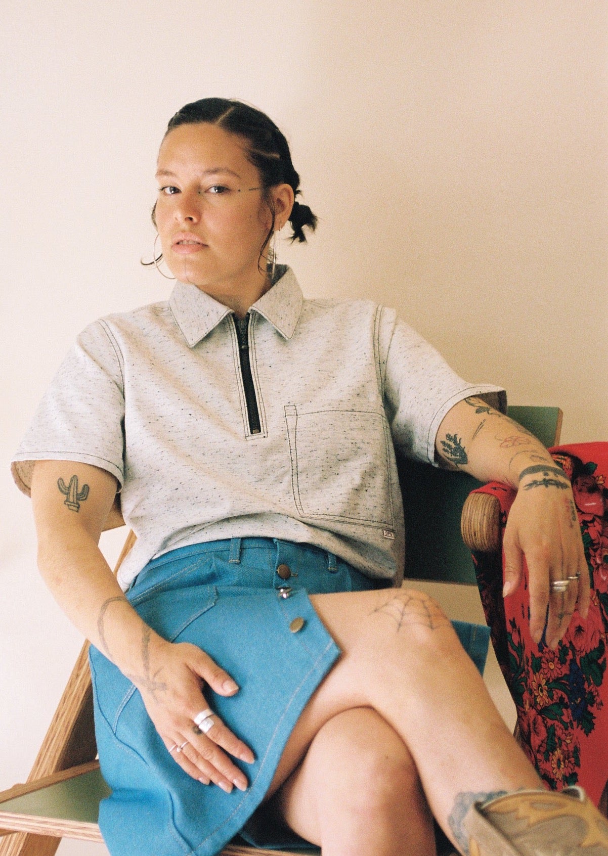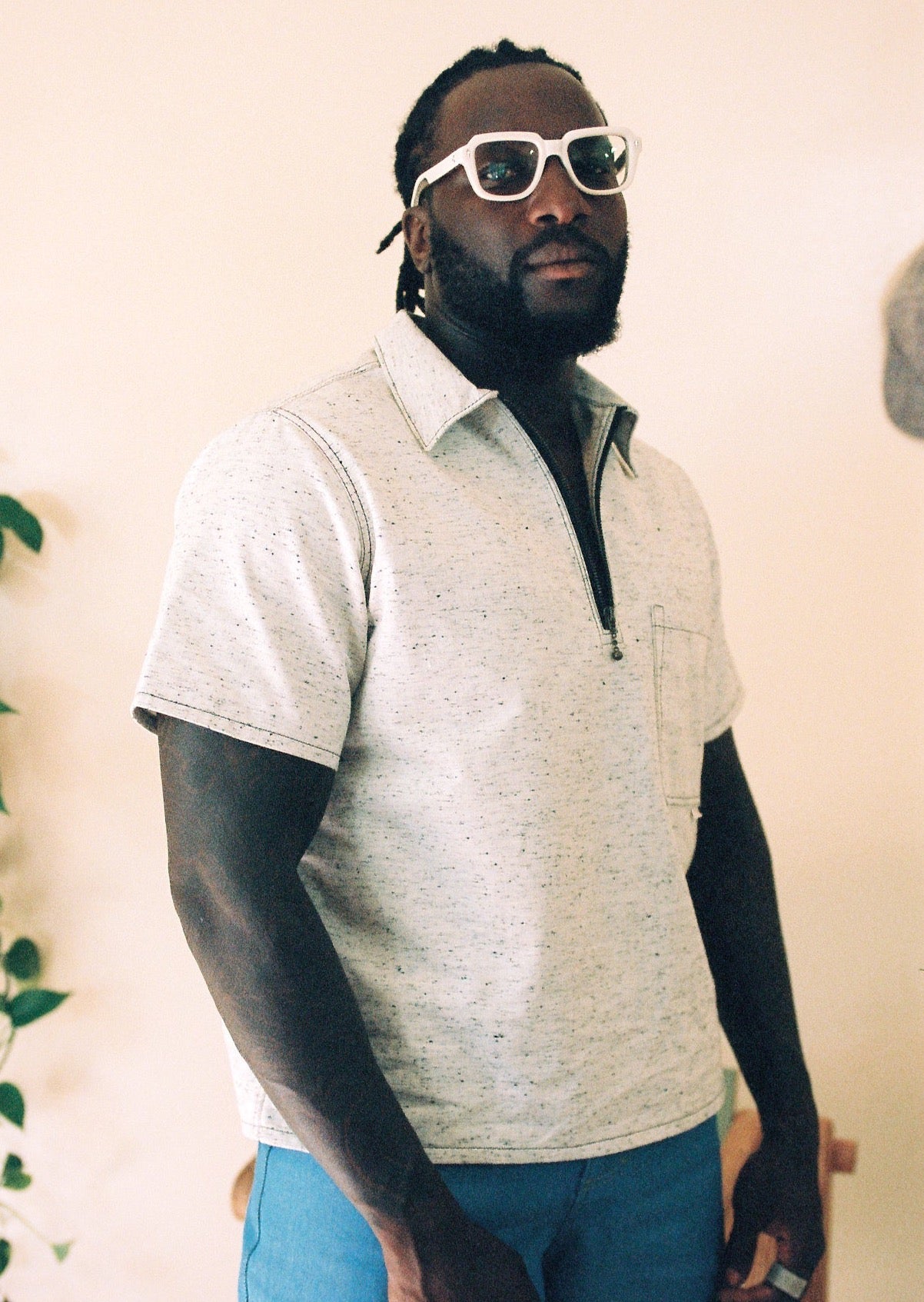 The Summer Nights Shirt is a versatile and breezy top that can be worn to the beach or around town but will also look dressed up when you realize you want to go out for a cocktail or bite to eat after a long day of being out and about. Made from finest quality Japanese shirting, this lightweight but structured collared shirt has a front zipper and makes for the perfect night time/day look that you can dress up or down.